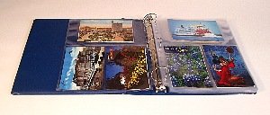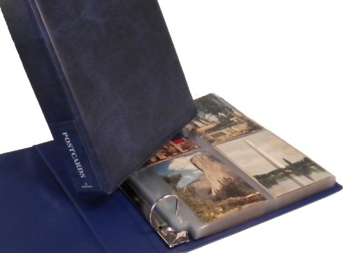 -. Feature : Attractive padded album organizes, displays and protects your postcard collection / Includes 25 assorted easy-to-use clear plastic pages to hold 150 postcards / Includes 25 assorted collectible postcards / Loose-leaf design is flexible and expandable; refill pages available / Holds most vintage, modern, continental and oversized postcards