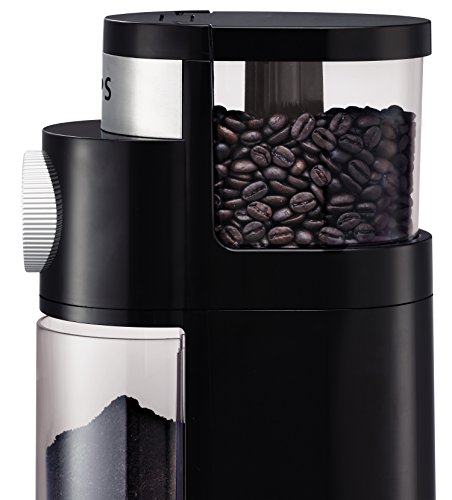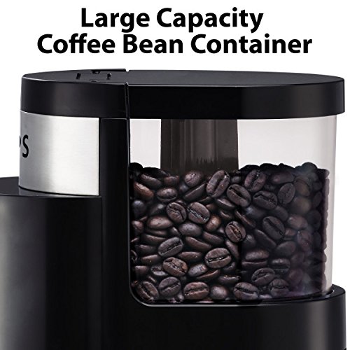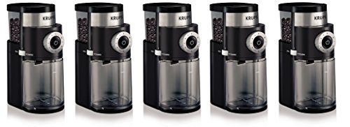 The new KRUPS Professional Burr Grinder GX5000 will ensure the best flavor and a perfect result in cup. Its Burr mill system ensures the best grinding results, will preserve aroma and avoid overheating. It also features a fineness selector: 45 settings divided in 9 steps, to allow a highly controllable texture, from very fine for espresso machines to very coarse for the use in a French press. The number of cups selector (2-12) will enable you to adjust the quantity of brewed coffee you need. The KRUPS Professional Burr Grinder GX5000 also features a coffee container with lid to preserve freshness and flavor of ground coffee. For safety reasons the GX5000 Coffee Grinder will not work unless lid of hopper and coffee container are in place and the unit will automatically stop once the designated quantity has been achieved. Topped with a large capacity hopper, the grinder fills effortlessly and provides easy access to its removable burr as well as cleaning brush for cleaning. Enjoy a perfectly balanced cup of coffee every morning with the KRUPS GX5000.Product can only work on 120V per US’s standardFeature