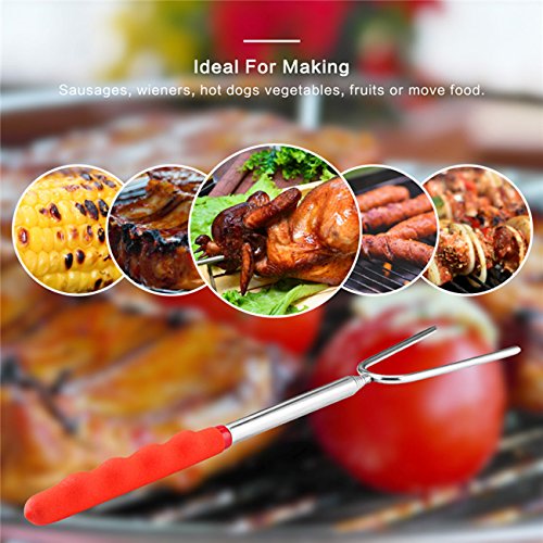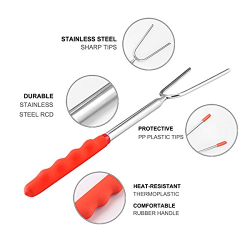 - High Quality barbecue forks: Made of Non-Toxic Heat-Treated FDA Approved 304 stainless steel, rustproof and very durable. The comfortable rubber handle with finger indents gives you a firm, enjoying the roasting fun with the Heat-insulated & Anti-skidding rubber handle