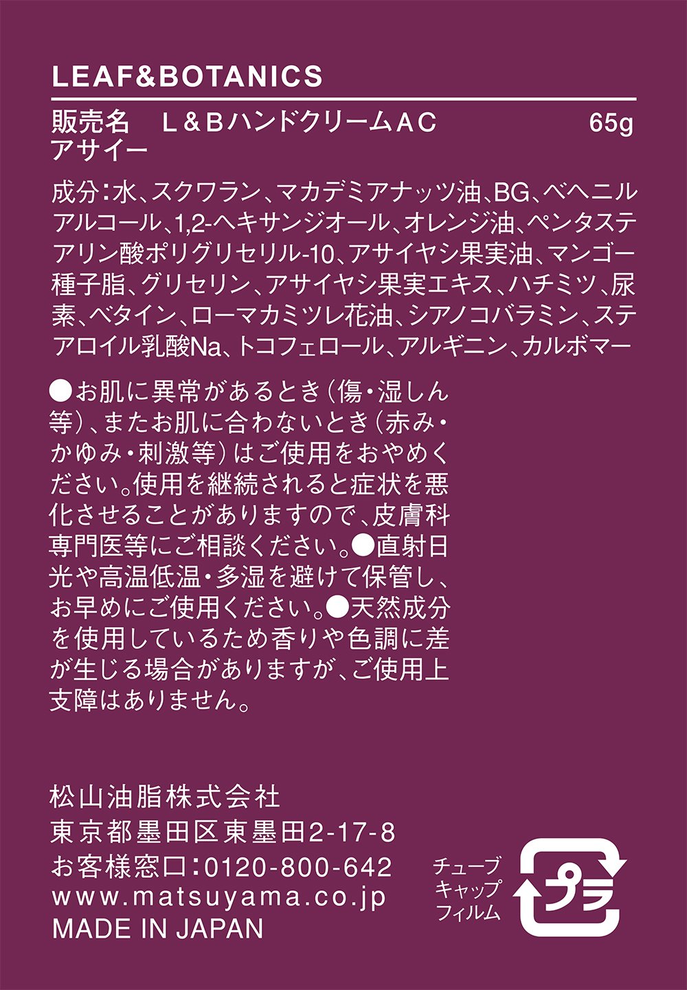 Leaf & Botanikusu hand cream acai