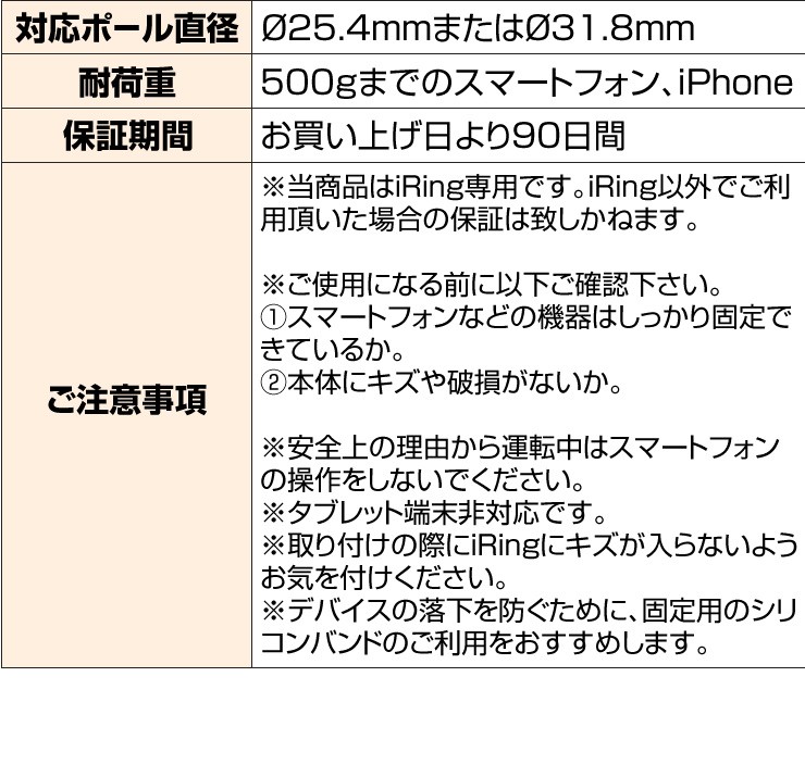 | 耐荷重 | 約6kg(iRing、付属フックとも) |
