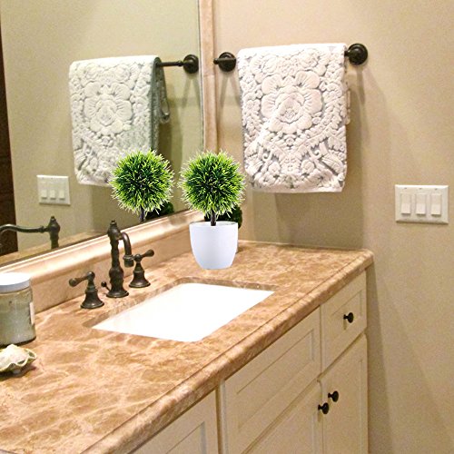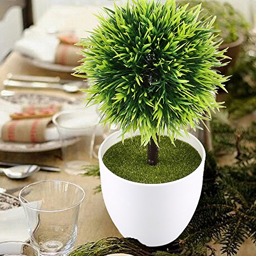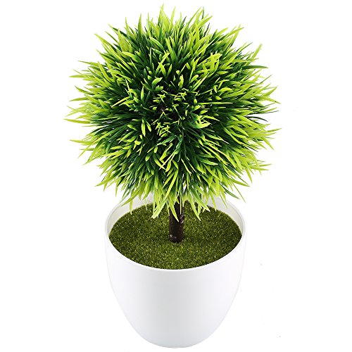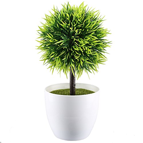 GTidea 9.5'' Artificial Fake Potted Plants Plastic Green Topiary Ball Shrubs with White Planter Pot for Home Kitchen Office Indoor Table Centerpieces Decors