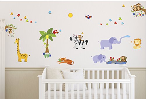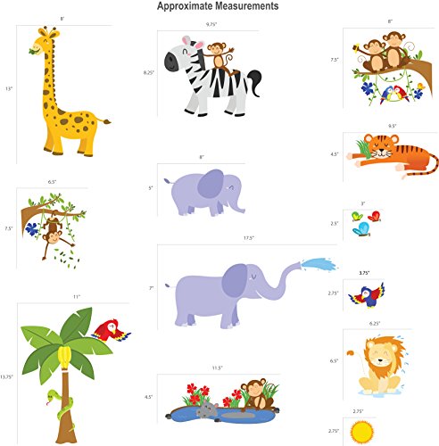 -. Title : Jungle Friends Wall Decals - Fun Animals for Kids Rooms and Nursery - Easy Peel Stickers