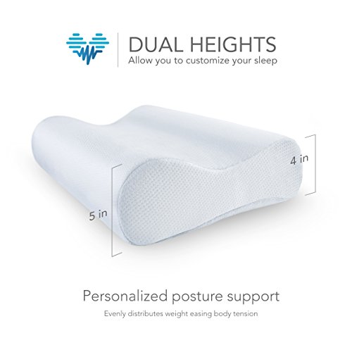Contoured Design ? Engineered form is built to provide ultimate comfort the best possible night's sleep each and every night ? Experience unique relief support that specifically targets the problem areas of the head and neck to deliver the best possible night's sleep ? Do away with the strains inadequate support provided by traditional and/or low-quality pillows that prevent rest, cause stress, and make waking up miserable ? Eradicate pain from sore necks, poor posture, lackluster support, poor spinal alignment, shoulder-aches, tension headaches, unwanted pressure points ? Best Pillow for Side Sleepers, Back Sleepers, Pregnancy Sleep support