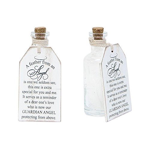 2"x 4.25"x .25" wood tag with container (A FEATHER FROM AN ANGEL), white/black - 19131