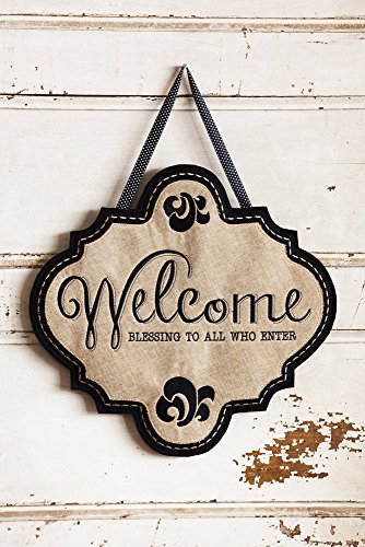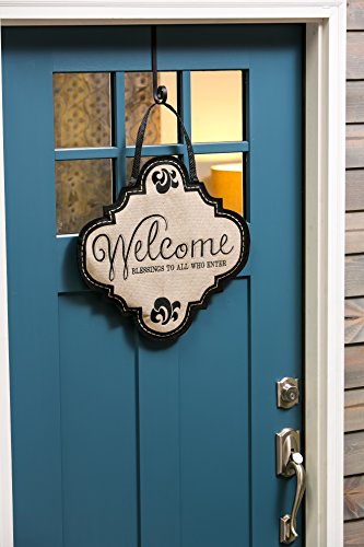 Evergreen Welcome Blessings Hanging Outdoor-Safe Burlap Door Décor - 18.8”W x 19.8”H