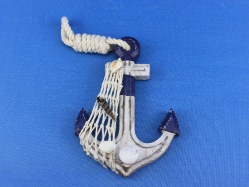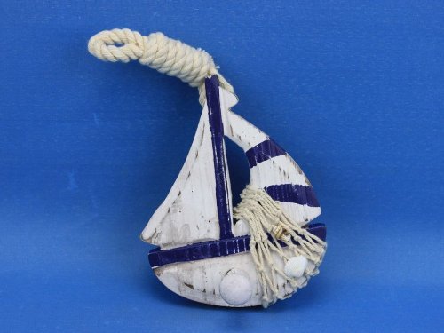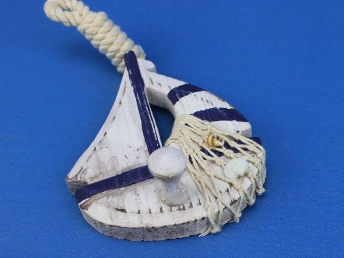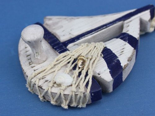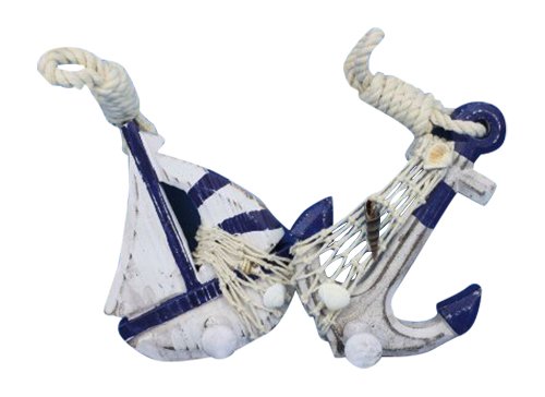 Hampton Nautical Wooden Rustic Blue Sailboat/Anchor Wall Accent with Hook Set, 6"