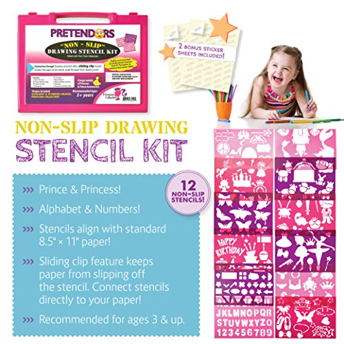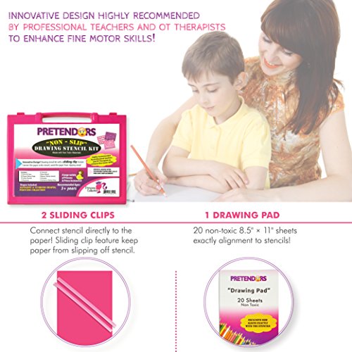 FINE MOTOR SKILLS DEVELOPMENT: Pretendors Non-Slip Drawing Stencil Set with an innovated design for preschoolers or children with OT delays. Just insert the sheet between the board and stencil and slide thru the clips for a creative fail-free tracing experience.
