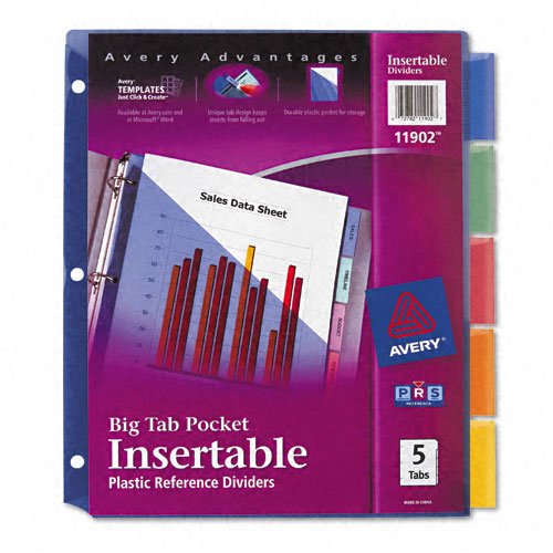 Avery Big Tab Pocket Insertable Plastic Dividers, 5-Tab Set, 2 pk
