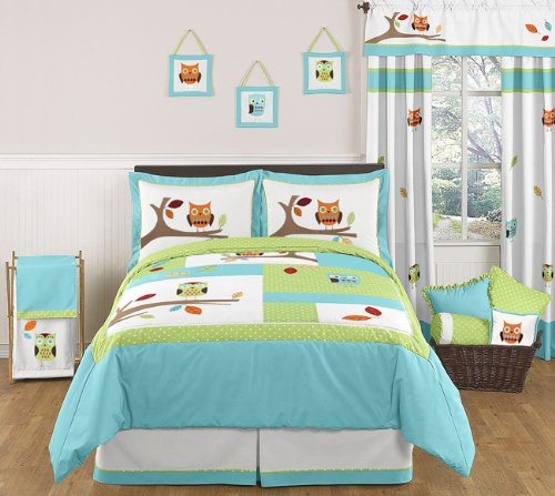 Sweet Jojo Designs Turquoise and Lime Hooty Owl Window Valance
