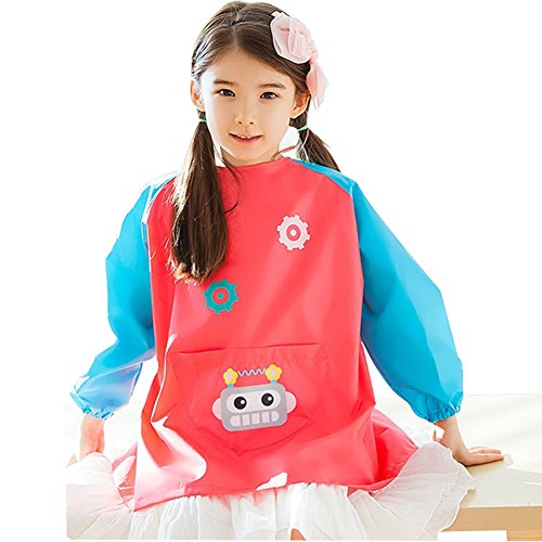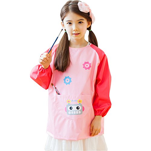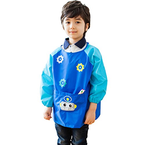 In front of the apron has a large pocket with a robot cartoon image, kids can hold paints, brushes, water pens and other tools