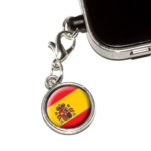 Graphics and More Spain Spanish Flag Anti-Dust Plug Universal Fit 3.5mm Earphone Headset Jack Charm for Mobile Phones - 1 Pack - Non-Retail Packaging - Antiqued Silver
