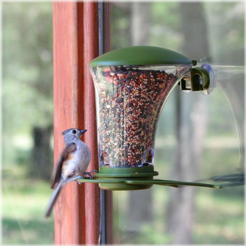 -. Feature : 1.5 lbs seed capacity / 3 feeding ports / Easy fill wide mouth top / View birds easily from inside window / Built for Nyjer or mixed-seed usage--simply rotate the ring to switch the seed type