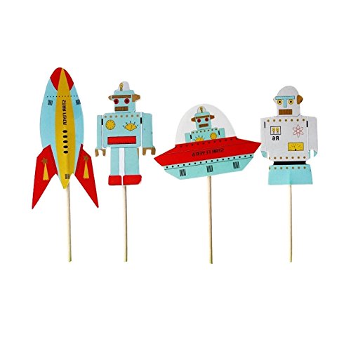 24 Robot Spaceship Rocket Cupcake Toppers for Decoration