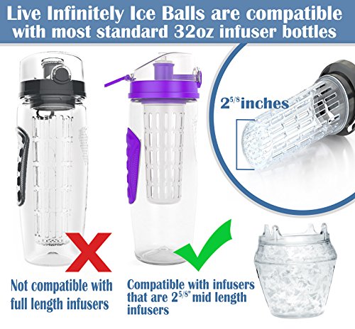 Live Infinitely 3 Pack GEL Freezer Balls For Infusion Water Bottles- Clip Onto The Bottom Of Your Current Infuser Rod To Keep Water Cold For Hours- Universal Fit For Most 32 Ounce Infuser Bottles