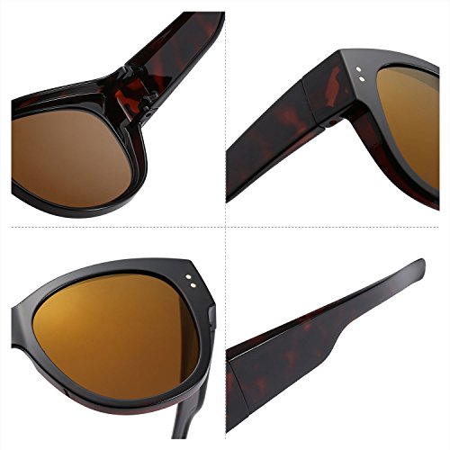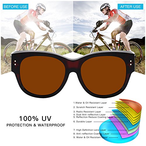 -. Feature : Classic Retro and Fashion Style: Wear Fits Over Sunglasses with Simple but Stylish Design / Impact and Scratch Resistant 9 Layers Polarized lens improve your vision, reduces glare and reflections, great for driving, and any outdoor activities. / Brilliant and Ergonomic Design: Many experiments done to improve specifics-the nose pad, temple, hinge andkeep trying to cover all the details to make a pair of comfortable and fashion sunglasses for every sunglasses-lovers; improved Ergonomic Designed sunglasses more comfortable and suitable / Remarkable Eye Protection and Comfortable Experience: UV400 Standard-100% UVA&UVB Protection / Quality Control: Only Best Quality Sunglasses Provided-Every pair of sunglasses must be checked before sent to our inventory, and must be checked again before sent to FBA inventory or Customer