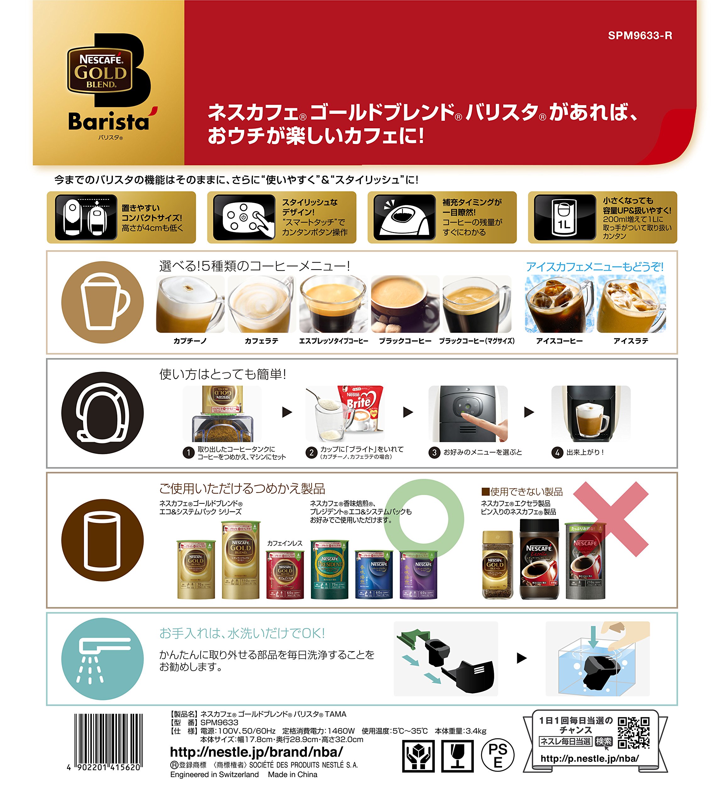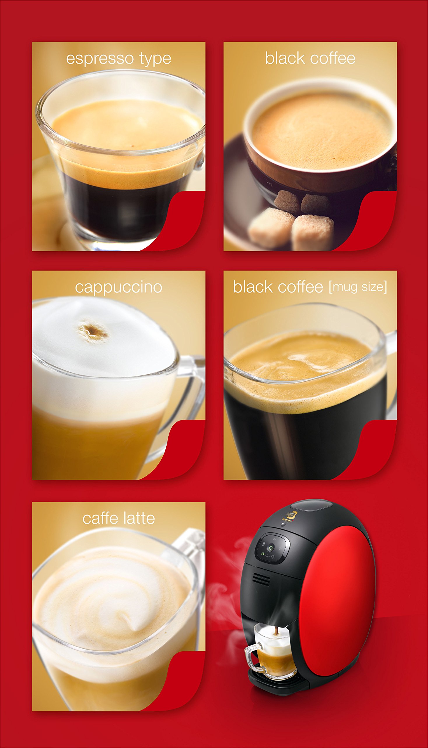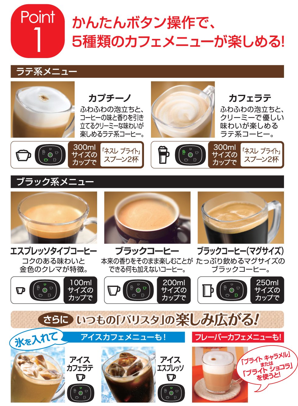 ● You can enjoy 5 types of cafe menus (espresso type coffee, black coffee, black coffee mug size, cappuccino, caffe latte) with simple button operation alone