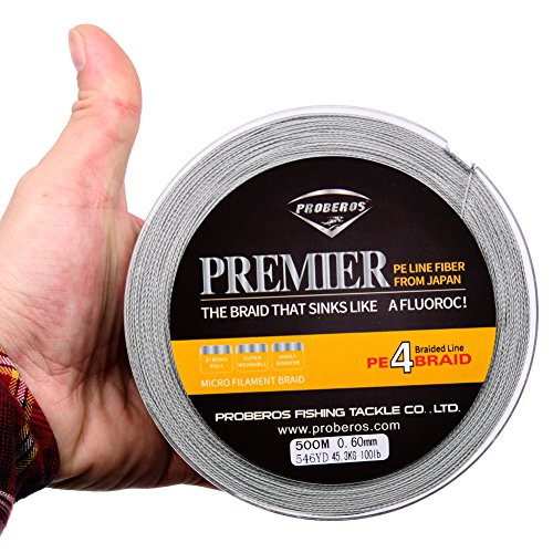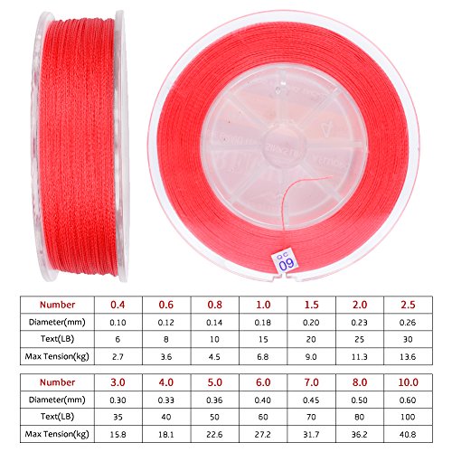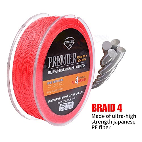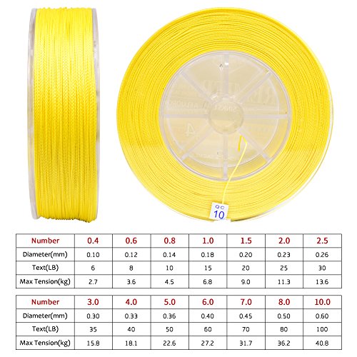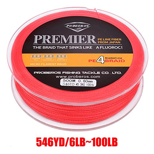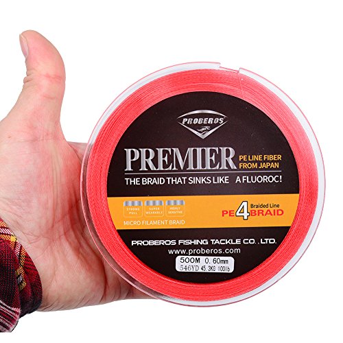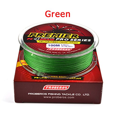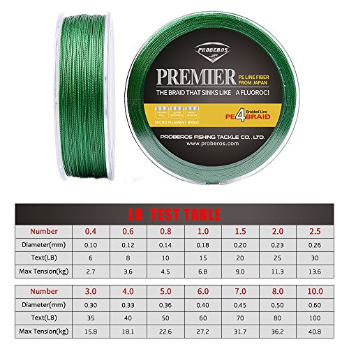 Studio : Proberos Publisher : Proberos Binding : Misc. Product Description About Proberos Proberos strives to be Global top brand of fishing gears. Our products are built with the intention of creating high quality and durable fishing gears which feature a user friendly design. As part of an ongoing goal to maintain the highest level of quality, we promise stand 100% behind our products.Welcome to shopping and fishing with Proberos! Features ·0-Stretch And 0-Limpness ·High Breaking Strength And High Abrasion Resistance ·Ultra Strength 4 Braided Line ·Multiple Size And Color Available Specifications ·Brand: Proberos ·Length: 547yds/110yds ·Size: 0.4/0.6/0.8/1.0/1.5/2.0/2.5/3.0/4.0/5.0/6.0/7.0/8.0/10 ·Material: Ultra-High-Molecular PE Fiber ·Buoyancy Characteristic: Half-Floating Line Details SIZE: 0.4----------POUND-TEST RATING - 6LB---------DIAMETER - 0.003IN. SIZE: 0.6----------POUND-TEST RATING - 8LB---------DIAMETER - 0.004IN. SIZE: 0.8----------POUND-TEST RATING - 10LB---------DIAMETER - 0.005IN. SIZE: 1.0----------POUND-TEST RATING - 15LB---------DIAMETER - 0.006IN. SIZE: 1.5----------POUND-TEST RATING - 20LB---------DIAMETER - 0.007IN. SIZE: 2.0----------POUND-TEST RATING - 25LB---------DIAMETER - 0.009IN. SIZE: 2.5----------POUND-TEST RATING - 30LB---------DIAMETER - 0.01IN. SIZE: 3.0----------POUND-TEST RATING - 35LB---------DIAMETER - 0.011IN. SIZE: 4.0----------POUND-TEST RATING - 40LB---------DIAMETER - 0.012IN. SIZE: 5.0----------POUND-TEST RATING - 50LB---------DIAMETER - 0.014IN. SIZE: 6.0----------POUND-TEST RATING - 60LB---------DIAMETER - 0.015IN. SIZE: 7.0----------POUND-TEST RATING - 70LB---------DIAMETER - 0.017IN. SIZE: 8.0----------POUND-TEST RATING - 80LB---------DIAMETER - 0.019IN. SIZE: 10----------POUND-TEST RATING - 100LB---------DIAMETER - 0.023IN.