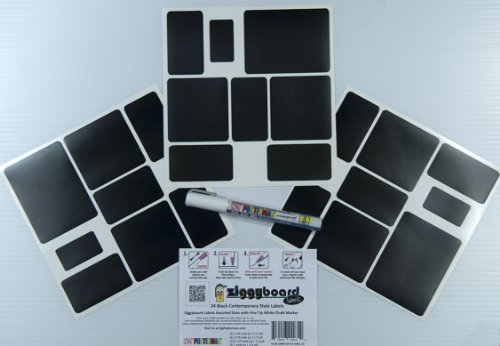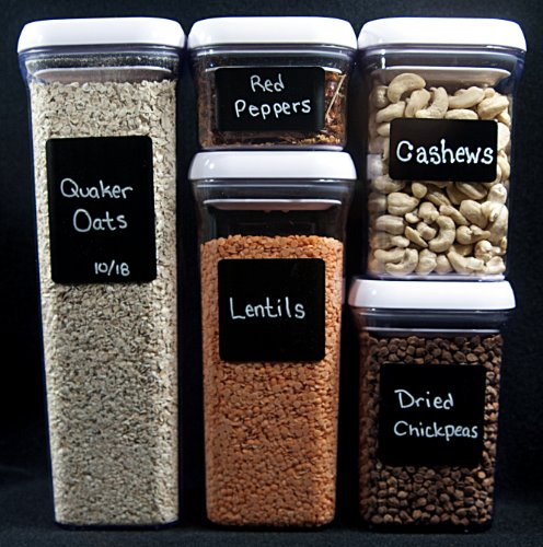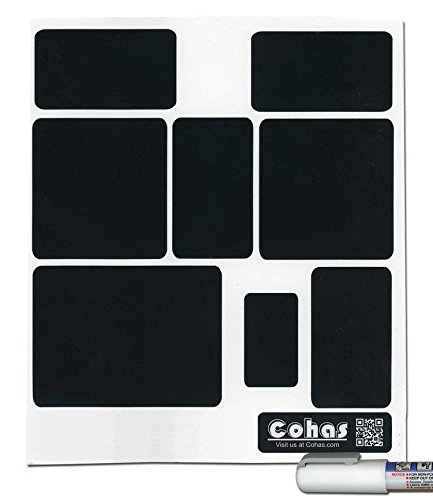 Cohas Chalkboard Labels in Contemporary Shapes for OXO POP Storage Containers includes Liquid Chalk Marker and 24 Labels, Fine Tip, White Marker