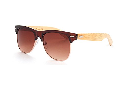SUASI Aviator Sunglasses with Half Frame Bamboo Legs for Mens Womens Wooden Sunglasses Zm00140 (brown)