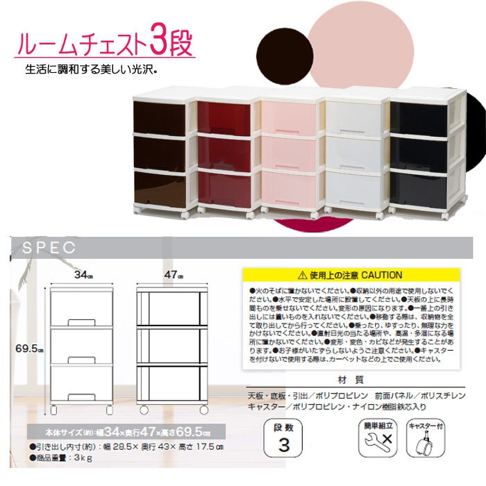 ルームチェスト ラグス3段同色2台セット◆サイズ◆本体サイズ(約):横34x奥行47x高さ69.5cm引き出し内寸(約):幅28.5x奥行43x17.5cm商品重量(約):3kg段数:3◆注意事項◆※配送時期により、箱が湿気の影響で潰れてしまう場合がございます。※商品の生産時期により若干前面パネルの色味が違う場合がございます。ご了承くださいませ。※リビング収納商品以外との同梱はできません。 別々でご注文お願いいたします。 他商品との同梱ご注文の場合、送料の一部をご負担いただく場合がございます。ご了承くださいませ。 ***お届け指定日について***日、祝日に配送指定をされても地域により配送日時指定通りにお届けができない場合がございます。※沖縄、及び一部離島扱い地域におきましては、誠に申し訳ございませんが大型商品の為、ご注文いただけません。ご了承くださいませ。☆お客様ご都合ご返品の注意点☆お客様ご都合返品の場合、送料無料商品に関しましても発送時にかかりました送料はお返しできませんのでご了承くださいませ。発送時送料700円