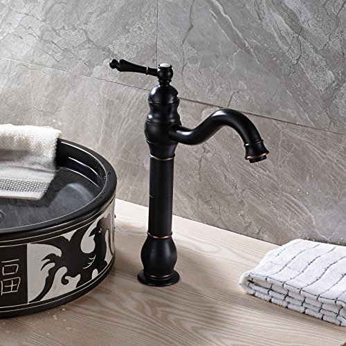 Rozin Deck Mount Bathroom Vessel Sink Faucet Single Lever Control Tall Spout Mixer Taps Oil Rubbed Bronze Finish