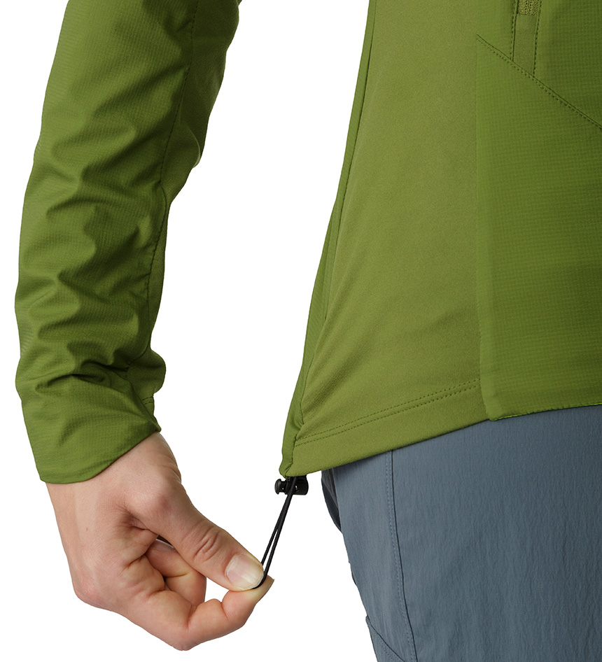 · 몸통에는 발수성능과 방풍을 위한 Tyono™ 20 원단을 사용하였으며 사이드 패널에는 신축성이 좋으며 방취 및 수분조절능력이 뛰어난 Torrent™을 사용 (Composite construction)