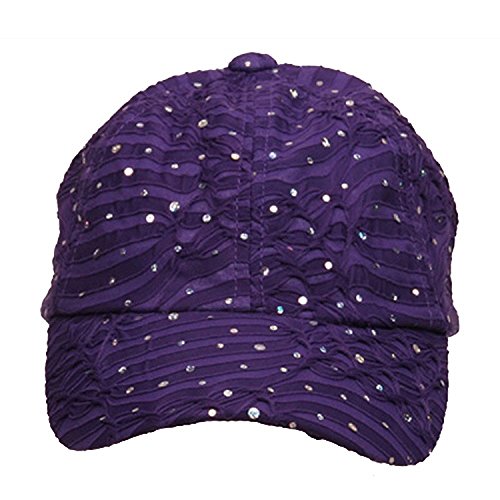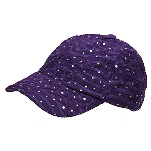 Binding : Apparel Product Description Razzle Dazzle emÆ in our purple glitter cap. Made from a blend of cotton and metallic, this 6 paneled soft and fully lined hat will have you shinning like a star in no time. Featuring a 3 inch long pre curved bill and adjustable strap closure in the back, this cap is comfortable and easy to wear no matter the weather or destination. Just be sure to bring your foster grants! Made of 60% Cotton and 40% Metallic. ONE SIZE with Adjustable Closure. Pre curved bill measures 3 inches Long. 6 paneled crown measures 3 1/2 inches deep. Made from a soft material with Glitter. Fully Lined inside. Hand Wash only. Imported. Available in many different colors. 0