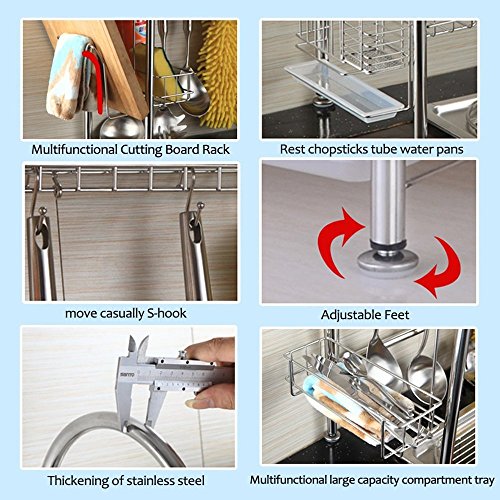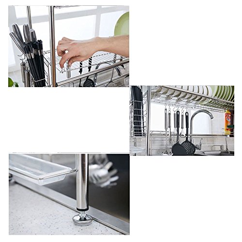 NEX HT-KC815S-L 2-Tier Dish Drainer with Chopstick Holde, Stainless Steel