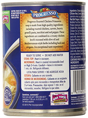 Progresso Soup, Traditional, Roasted Chicken Primavera Soup, 18.5 oz Cans (Pack of 6)