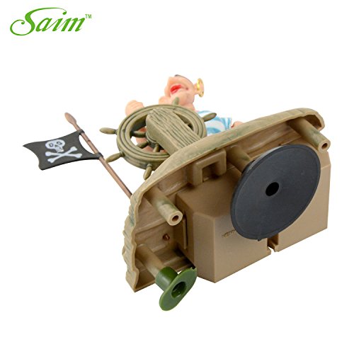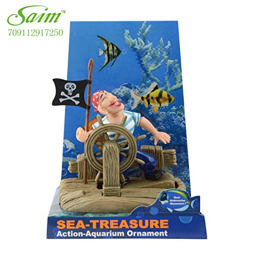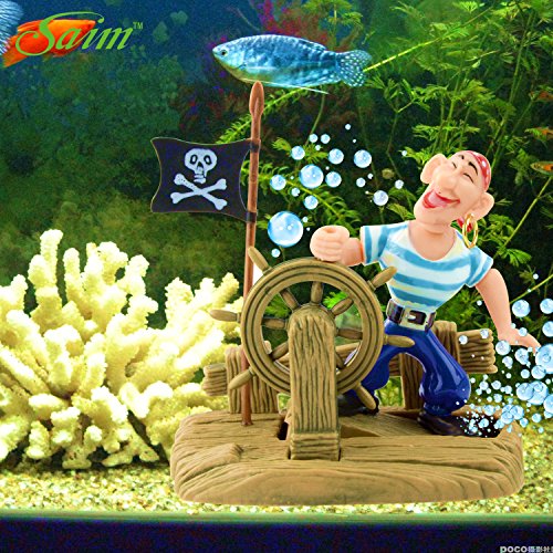 -. Feature : Real motion air-driven ornaments provide entertaining action while aerating your tank. / Happy pirate is sailing the ship with a big smile on his face. / Requires Tubing (not included). / Requires air pump (not included). Pressure control valve recommended.