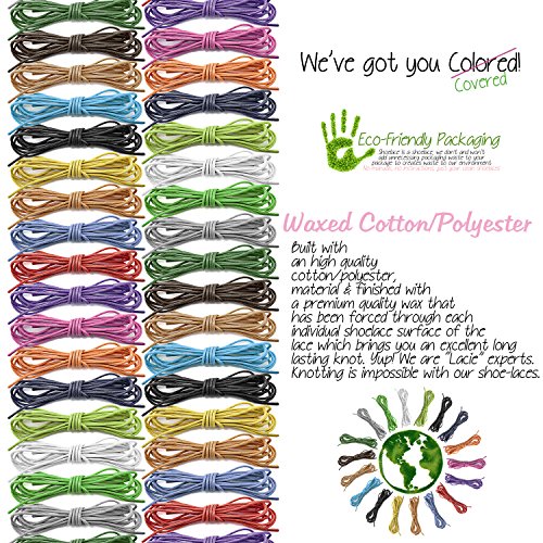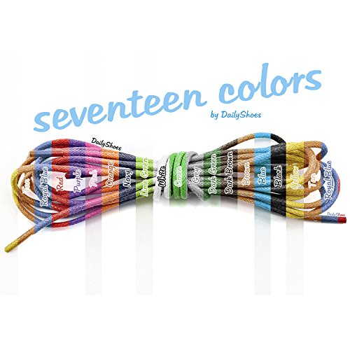 -. Brand : DailyShoes -. Color : Black/Blue/Brown/Green/Grey/Off-White/Orange/Pink/Purple/Red/Tan/Yellow -. Department : unisex-adult -. Feature : ********** Please note that DailyShoes is a registered trademark. Shoes19 is the ONLY AUTHORIZED SELLER of our products. Please make sure to buy from Shoes19 to ensure you receive the accurate item. Shoes19 is not responsible for other sellers selling a different, inferior quality of our products. *********** / Seventeen variety of colors to choose from / Durable for long-lasting wear / Premium Strength and Quality (One Pair per Order) **** Wax Has Been Forced All The Way Through The Fabric, Rather Than Just Coating Its Surface, Providing a Lasting Knot. **** / Great Shoelaces for Boots and Many Types of Shoes (Stays Tied All Day!) / Laces available in various lengths for compatibility with almost any shoe -. ProductGroup : Shoes -. ProductTypeName : SHOE_ACCESSORY -. Title : DailyShoes Round Waxed Shoelaces Oxford Flat Dress Canvas Shoe Laces (One Pair)