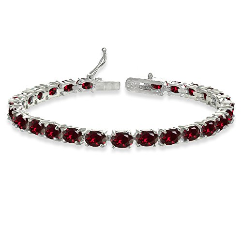 Sterling Silver 6X4mm Genuine, Created or Simulated Gemstone Oval-cut Tennis Bracelet