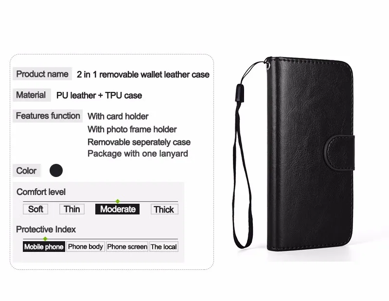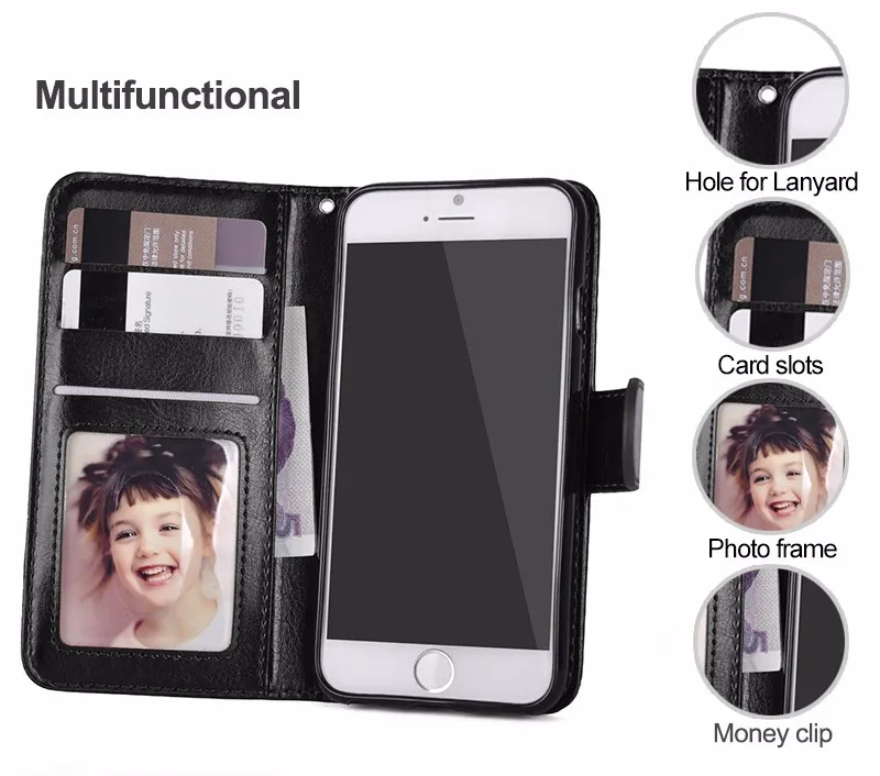 feature 1:magnetic 2 in 1 detachable flip cover PU leather case