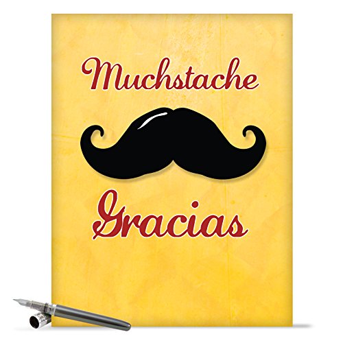 J9953K Jumbo Funny Thank You Card: Mustache Gracias With Envelope (Extra Large Version: 8.5'' x 11'')