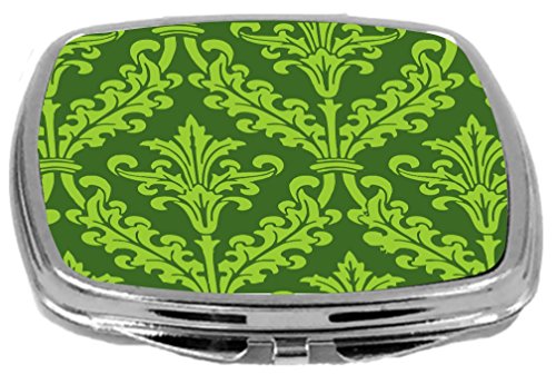 Rikki Knight Compact Mirror, Olive Green Damask