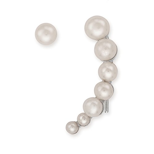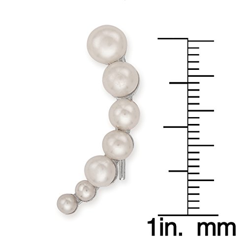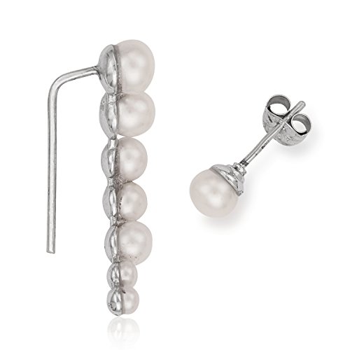 Sterling Silver Curved Cultured Freshwater Pearl Bar & Single Stud Ear Crawler Earrings