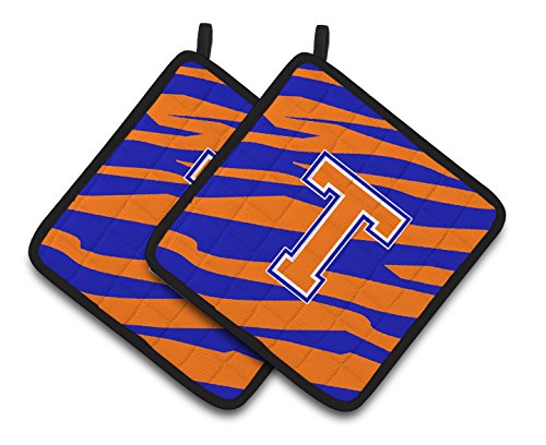 Caroline's Treasures Monogram Initial T Tiger Stripe - Blue Orange Pair of Pot Holders CJ1023-TPTHD, 7.5HX7.5W, Multicolor