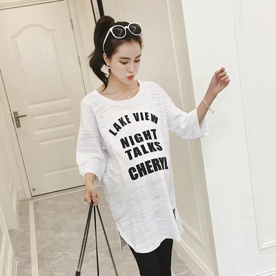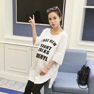 孕妇宽松t恤春装新款上衣白色体恤中长款七分袖孕妇装t恤衫