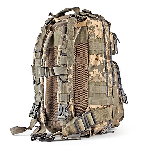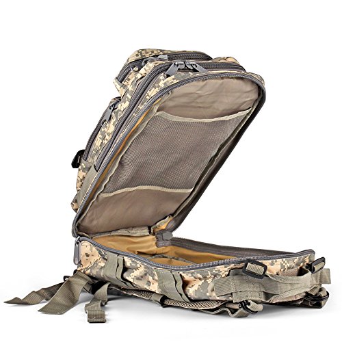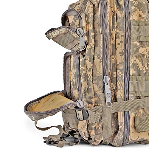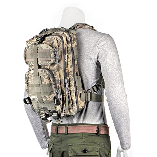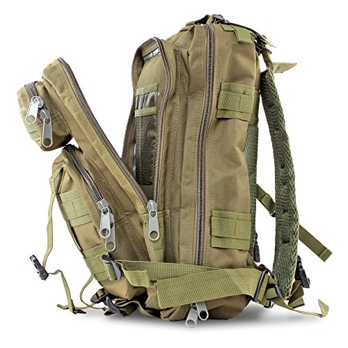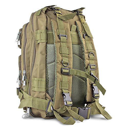 -. Binding : Misc. -. Brand : Flexzion -. Feature : Heavy-Duty water resistant nylon pack cloth construction and oversized zippers for extra durability / Features a spacious main compartment with zip-up closure, interior zip-up, mesh pockets and front storage zip-up compartments / Strap and ring around the backpack, able to add-on pouches and accessories; Breathable mesh backing for comfort especially in hot weather / Chest belts can adjust distance between the two shoulder straps and strengthen the stability of the backpack; Padded and adjustable shoulder straps relieve pressure on shoulders / Perfect for outdoor activities; Can hold laptop up to 14" -. Label : Flexzion -. Manufacturer : Flexzion -. ProductGroup : Sports -. ProductTypeName : SPORTING_GOODS -. Publisher : Flexzion -. Studio : Flexzion -. Title : Flexzion Tactical Backpack Outdoor Military Unisex Rucksack Travel Molle Daypack Bag 30 L Capacity 600D Nylon for Camping Hiking Hunt Trekking with Multi Zippered Pocket