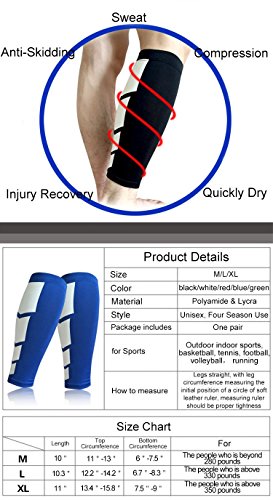 -. Feature : ★ HELPS SHIN SPLINTS AND PREVENTS INJURIES : Runners are prone to lots of common inflammation injuries. Using the CFR compression sleeves will help you get relief from shin splints pain and prevent further injuries. They offer true graduated compression. This ensures increased blood transport to muscles over the entire length of the sleeve. / ★ AVAILABLE FOR YOUR CALF SIZE: CFR Leg Compression socks will fit calf three sizes which are approP.R.Iate for both men and women. Please refer to our sizing guide below to choose the perfect size for you. / ★ USE AS ACTIVE AND RECOVERY SLEEVES: CFR compression sleeves may be used as both active and recovery sleeves. When used while running, the graduated compression reduces muscle vibration, which in turn reduces muscle fatigue. When used as a recovery sleeve, the increase in blood flow helps oxygen starved muscles recover much faster than normal. / ★ MATERIAL: The CFR Calf compression Sleeve is made from a lightweight mix of 25% Spandex and 75% Lycra. The Spandex has superior compression characteristics for maintaining firm pressure on the calves. The Lycra allows air to circulate to the skin, while at the same time allowing moisture to wick out. Produced on state-of-the-art looms, CFR compression sleeves are flawless from top to bottom. / ★ OUR GUARANTEE: If for any reason you are not 100% satisfied with your CFR compression sleeves, please contact customer service and we will immediately refund your purchase P.R.Ice