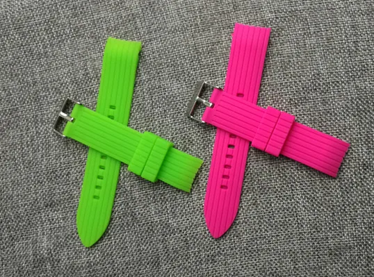 새로운 스테인레스 스틸 버클 캔디 컬러 실리콘 스트랩 20 미리메터 브랜드 운동 방수 스트랩