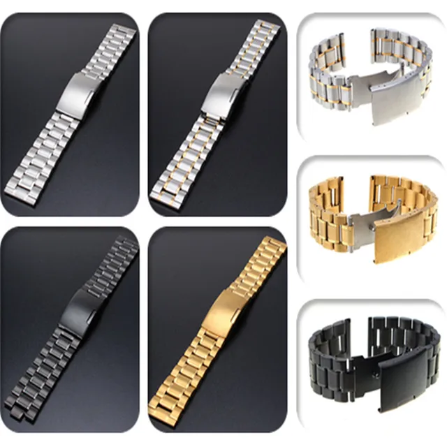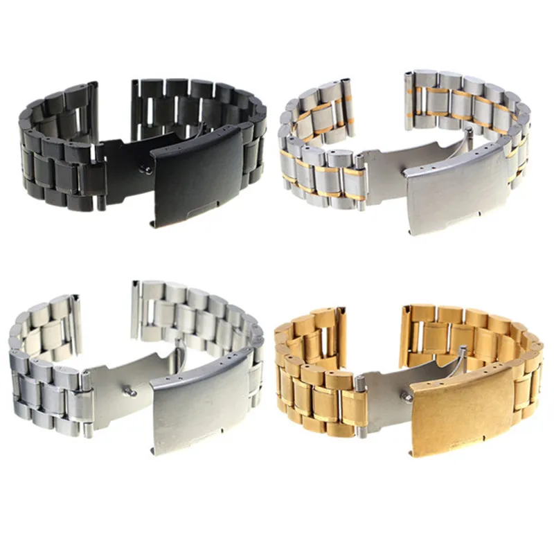 | [해외]18-22 미리메터 4 컬러 Sta inless 스틸 시계 줄 플랫 스트레이트 엔드 금속 푸시 버튼 걸쇠 버클 남성 시계 스트랩 팔찌 손목 |