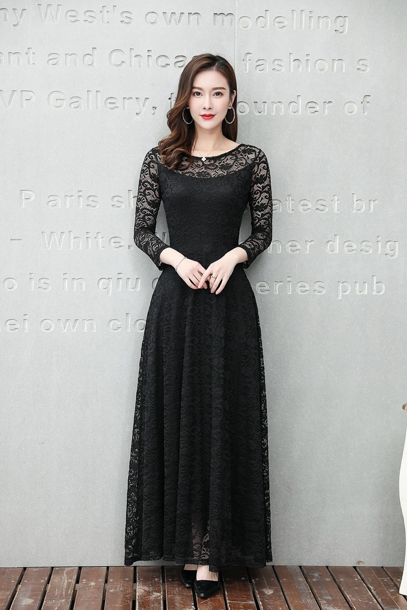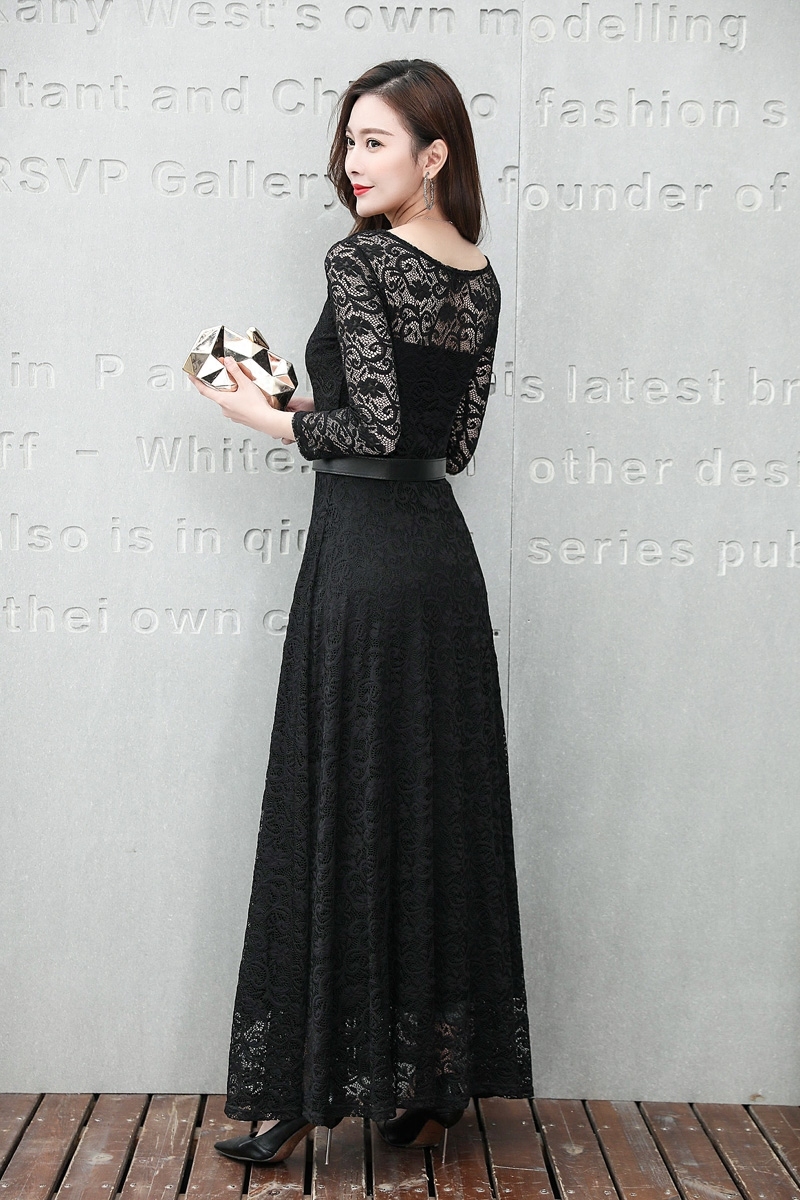 パーティードレス 結婚式 ドレス 二次会 お呼ばれ ロング丈 総レース シースルー 七分袖