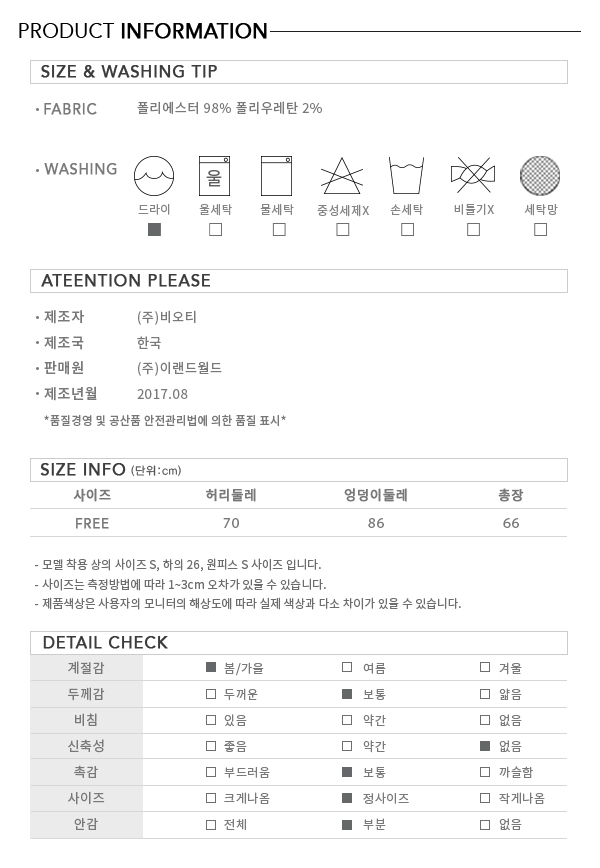- 백 밴딩으로 편안하게 착용가능한 FREE사이즈 스커트입니다.