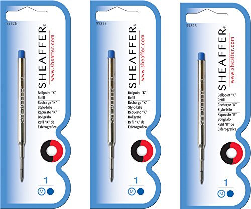 Sheaffer K Ballpoint Pen Refill, Medium Point, Blue Ink, 3/Pack (99325) by Sheaffer