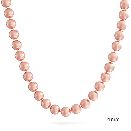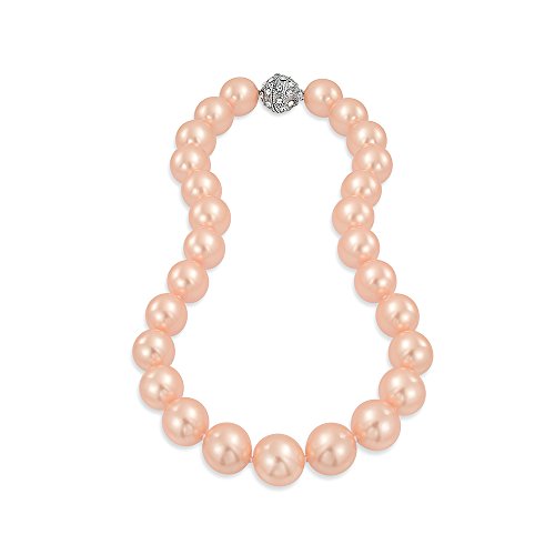 For the blushing bride or her bridesmaids, our pink simulated pearl necklace will look pretty on any lady. This classic pink simulated pearl and crystal necklace makes a perfect gift for that special someone in your life. For both style and function, this pink simulated pearl strand necklace is fastened with a rhodium plated ball clasp pave set with crystals. At such an affordable price, you should pick one up for everyone on your list this holiday season that is particular about their jewelry selection. Buy yours today.
