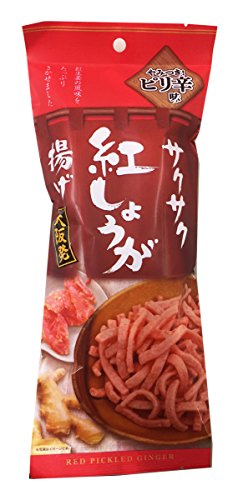 原材料:小麦粉、コーンスターチ、植物油(大豆を含む)、生姜シーズニング(ジンジャー末、食塩、たん白加水分解物、その他),砂糖、食塩、生姜パウダー/加工デンプン、膨張剤、着色料(紅麹)、調味料(アミノ酸等)、香辛料抽出物、甘味料(スクラロース)、リン酸三カルシウム