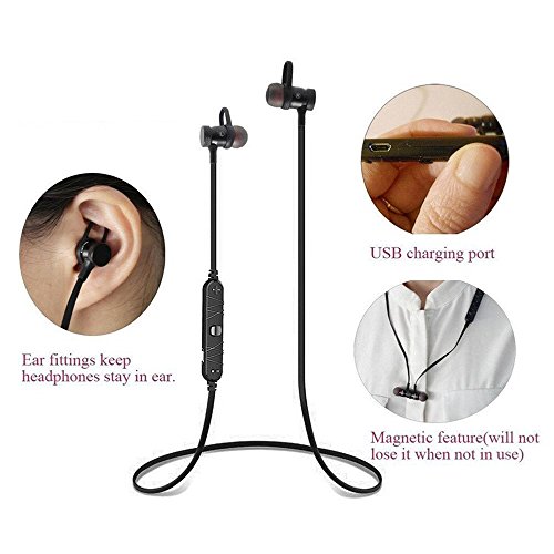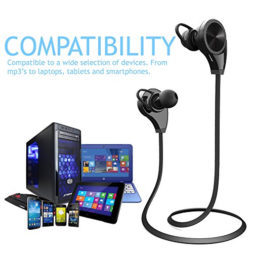 Premium Wireless Bluetooth Noise-Cancelling Headset Sweat Proof Sport Earphone w/ Built-in Mic for Apple iPhone 6 / 6 Plus / 5 / 5S / 5C / iPad / iPod / MacBook Air / Samsung Galaxy S5 / S4 and most Bluetooth enabled devices. Color: Black