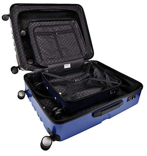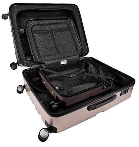 Comfortable transport 4 rubberized spinner double wheels, rotatable through 360 ° Telescopic rod with push button (3-stage lockable)